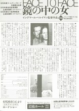 解説 ベルイマン監督が現代人の孤独と絶望を、魅力あふれる映像で描いた作品。ウルマン扮する主人公の精神分析医を通して、彼女の幼児体験や罪の意識、老いに対する恐怖が様々な人間関係の中から表われてくる。