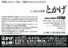 にっぽんの名作・とかげ ニッポンノメイサクトカゲ 上映時間:49分 / 製作:2003年(日本) 画像 監督の関連作品 出演者の関連作品 情報提供:ぴあ スタッフ 監督:塚本晋也 キャスト りょう りょう 上映スケジュール 近くの映画館 上映スケジュールがありません さらに読み込む より詳しい検索はこちら