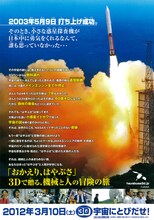 解説 『釣りバカ日誌』シリーズや『鴨川ホルモー』などで知られる本木克英監督が手掛けた3D実写映画。宇宙航空研究開発機構(JAXA)の協力のもと、昨年6月13日に約60億キロの飛行の末、地球へと帰還した小惑星探査機“はやぶさ“にまつわるさまざまなエピソードが語られる。臨場感とスペクタクル感が存分に味わえる宇宙空間の3D映像も注目。