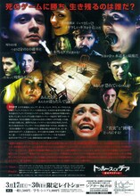 解説 欧米圏で親しまれるパーティーゲームで、日本でいうところの王様ゲームである“トゥルースorデア(真実か挑戦か)“を題材としたスリラー。大学生の5人がパーティで同級生に“真実か挑戦か“ゲームを強いられ、味わう恐怖体験を描き出す。互いに裏切りあい疑心暗鬼に陥る参加者同様、観る者をも疑心暗鬼にさせてしまう予測不能な展開が見ものだ。