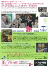 あらすじ・ストーリー ジャンヌは年を重ね、進行している病気のことや、夫が記憶を失いつつあることが心配で、人生の最後をどう過ごすか考えていた。そんな折、友人のクロードが心臓発作で倒れてしまい老人ホームに入ったという知らせが。そこで彼女は友人たちとの共同生活を思いつき……。