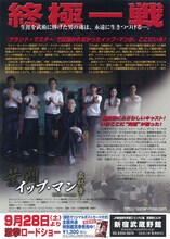 あらすじ・ストーリー 1949年の中国。武術家イップ・マンは日本軍に家を押収され、貧困に身をやつしていた。そこで生活のために最愛の妻や息子と離れて、ひとり香港へと渡り人々に詠春拳を教える。やがて、妻ウィンセンも香港を訪れ、久しぶりの幸せな時間を過ごすのだが……。