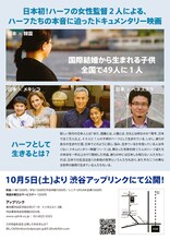 あらすじ・ストーリー ガーナ人の母親と日本人の父親の間に生まれたデイビッド、アメリカ留学中に出会って結婚したメキシコ人女性と日本人男性を両親に持つアレックスとサラなど5組のハーフが出演。自身のルーツと向き合い、それぞれの人生を切り開こうとする彼らの姿を映し出す。