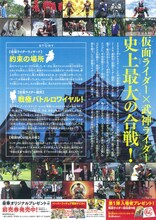 あらすじ・ストーリー “戦極バトルロワイヤル“に出場していた鎧武、バロンらの前に謎の怪人が出現。舞を連れ去ろうとした怪人を追う中で、鎧武らは時空の亀裂に飛び込む。彼らがたどり着いたのはライダーたちが武将の守護者となって戦う世界だった。(『仮面ライダー鎧武』編)