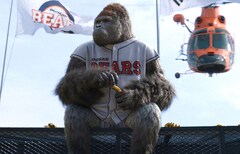 あらすじ・ストーリー 万年最下位球団のベアーズは一世一代の賭けとして、大物ルーキーに“ミスターGO“という名のゴリラを抜擢。賛否両論渦巻くなか迎えた初打席で彼はバックスクリーンを打ち砕く。その後も彼は大活躍を見せ、やがて、空前の“ゴリラ争奪戦“へと発展する。