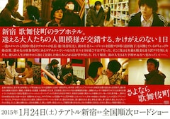 あらすじ・ストーリー 7年後のオリンピックを控えて変わりつつある歌舞伎町。ホテルマンになる夢に破れてラブホテルの店長に身をやつす若者、徹はミュージシャン志望の恋人、沙耶との関係に行き詰っていた。一方、そのラブホテルでは、他にもカップルが激しい思いをぶつけ合い……。