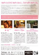あらすじ・ストーリー 女優の愛子の熱愛が発覚するが、恋人から一方的に別れを告げられてしまう。ファンから寄せられた祝福コメントの手前もあって破局を公にできずにいた愛子は、映画の撮影現場で「愛してる」というセリフに詰まってしまう。(『LOVE REVOLUTION』)