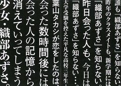 あらすじ・ストーリー 大学受験を控えた高校生タカシは、織部あずさという美少女にひと目惚れし、デートを重ねるようになる。しかし彼女は「私に会った人たちは全員、私の記憶が消えていく」と告白。最初は信じようとしないタカシだったが、彼女の言葉はやがて現実のものとなり……。