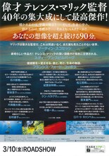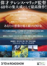 解説 テレンス・マリックが40年に及ぶライフワークを集大成した本作は、宇宙の誕生と死の探求を描いている。またケイト・ブランシェットによるナレーションで映像を盛り上げる。さらに視覚効果チームと科学チームのタッグによって、地球上と天空の自然現象、マクロとミクロの世界など、これまでにない映像が多様で革新的な方法で表現されている。
