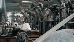 解説 著しい経済成長を遂げているインドの巨大な繊維工場にカメラを持ち込み、劣悪な環境で働く労働者たちの姿や、グローバル経済がもたらした過酷な現実を映しとったドキュメンタリー。宗教画を思わせるほどの美しさが漂う流麗なカメラワークや、作業機械から出る音の反復がもたらす圧倒的な音響がカタルシスさえもたらす、異様な迫力を持った怪作だ。