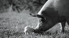 あらすじ・ストーリー とある農場で暮らしている母豚のグンダ。そんな彼女のそばで、生まれて間もない子豚たちが、乳を求めて必死に立ち上がる。また、彼らの周りでは鶏が力強く大地を踏みしめ、牛は群れで大地を駆け巡っていた。カメラはそんな彼らの姿をモノクロ映像で捉えていく。