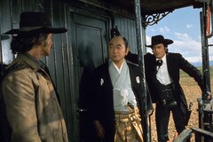 あらすじ・ストーリー 1870年。黒田重兵衛をはじめ大使一行は、日米修好のため特別列車で大草原を走っていた。同じ頃、強盗団のリンクとゴーシュは、列車に積まれた金貨を強奪する。しかし、ボスの座を狙うゴーシュはリンクを裏切り、大使の宝刀を奪った挙句、列車の爆破を計る。