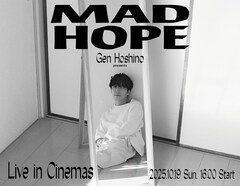 《“Gen Hoshino presents MAD HOPE” Live in Cinemas》 ゲンホシノプレゼンツマッドホープライブインシネマ 2025年10月19日(日)公開 / 製作:2025年(日本) / 配給:ライブ・ビューイング・ジャパン 概要 画像 出演者の関連作品 解説 2025年10月19日にKアリーナ横浜で行われる『Gen Hoshino presents MAD HOPE』ツアー最終公演を、全国の映画館で生中継。約6年ぶりとなるツアーでは、日本各地に加えアジア3都市も巡り、星野源のキャリアの中でも屈指の完成度と絶賛されている。国内外のファンが注目するステージを、映画館で体感しよう。 情報提供:ぴあ キャスト 星野源 リンク 映画「《“Gen Hoshino presents MAD HOPE” Live in Cinemas》」公式サイト 上映スケジュール 近くの映画館 上映スケジュールがありません さらに読み込む より詳しい検索はこちら
