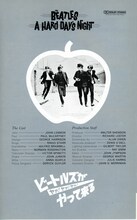 解説 1960年代のミュージック・シーンに登場し、またたく間に世界中の若者を虜にしたイギリス・リバプール出身の4人組、ザ・ビートルズ――ジョン・レノン、ポール・マッカートニー、リンゴ・スター、ジョージ・ハリスンは解散するまで数々のヒット曲を送り出した。その高い音楽性は多くのミュージシャンたちに影響を与え、今もなお信奉者を持つ永遠のアイドルである。彼らが出演した映画作品は4本あるが、これはその第1作。当時人気の頂点にいた彼らの一日半の生活をドキュメンタリー・タッチで描く。プロデューサーとシナリオライターの二人が彼らの公演に同行し、性格、行動などを詳しく取材して脚本にまとめ上げた。撮影はロンドンを中心に行われ、地下鉄、駅、TVショーへと目まぐるしく走り回る4人の姿を、スピード感あふれるカメラで捉えていて新鮮。演奏される曲は、タイトル曲のほかに『恋する2人』『恋におちたら』『すてきなダンス』など全部で11曲。2001年のリバイバル公開時のタイトルは「ハード・デイズ・ナイト」。現在DVDはこのタイトルでリリースされている。