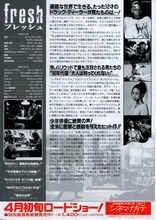 解説 12歳にして、ドラッグ・ディーラーとしての地位を確立した少年の生き様を描いた社会派サスペンス。ニューヨーク・ブルックリンに住むマイケルは、“フレッシュ“の名で通るドラッグ・ディーラー。麻薬の売買はビジネスと捉えていた彼が、相次ぐ友人の死により、自分の生き方に疑問を持ち始める。やがてマイケルは、密売組織を相手に大胆な罠を仕掛けるのだが……。