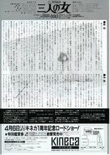 解説 カリフォルニアの砂漠の中にある老人リハビリ・センターに、テキサスからピンキーという娘がやって来た。彼女は看護婦のミリーについて見習いとして仕事を始める。ミリーは気どり屋で周囲から敬遠されていたが、ピンキーだけは彼女を慕い、ルームメイトとしての同居生活もうまくいっていた。ある日、ふとしたことからミリーになじられたピンキーは失意のはてに自殺未遂し、それ以来人格が一変してとげとげしい女になってしまう。そんな二人の住むアパートの家主は、謎めいた絵を描き続ける女性ウイリーだった。3人の女の運命は絡み合いながら予測もつかない方向に展開していく……。R・アルトマンがある夜見た夢をもとに、刺激的な迷宮を思わせる映像世界を描いた魅力あふれる傑作である。