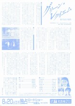 グリーン・レクイエム グリーンレクイエム 上映時間:97分 / 製作:1985年(日本) / 配給:東北新社 概要 画像 監督の関連作品 出演者の関連作品 解説 完成から3年、陽の目を見なかった今関あきよしの劇場用映画第2作。光合成によって栄養を補給するという少女・明日香と国立植物学研究所に勤める若者・信彦との愛を描いたSFファンタジー。 情報提供:ぴあ スタッフ 監督:今関あきよし 音楽:久石譲 キャスト 鳥居かほり 坂上忍 小林聡美 岡田英次 佐藤慶 蜷川有紀 上映スケジュール 近くの映画館 上映スケジュールがありません さらに読み込む より詳しい検索はこちら