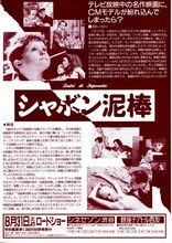 解説 ネオ・レアリスモ映画の傑作「自転車泥棒」を土台に、イタリア映画界注目の新鋭、M・ニケティ監督が描くパロディ・コメディ。高名な映画監督ニケティの新作、「シャボン泥棒」が放映されようとしているテレビ局。高慢ちきな批評家は自分がどう映るかだけを気にし、映画はそっちのけ。いよいよニケティの「シャボン泥棒」がオン・エアされることになるが、映画とCF、しかも現実世界まで入り交じって、彼が描こうとした映画世界とは、似ても似つかぬものとなってしまう。最近はやりのテーマではあるが、切れのいいユーモアと多層な世界の混交、加えて臆面もない名作のパロディなどにより、ニケティ独自の世界を築き上げている。モスクワ映画祭金賞受賞。