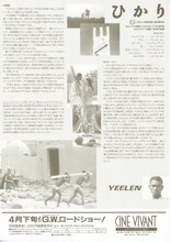 解説 “人間のなかにある神秘性、人を死に至らせる狂気へと誘う利己主義“が、この映画の重要なところだと語るS・シセ監督。彼は、1940年マリに生まれ、モスクワで映画を学び、現在はパリ在住。映画は、主人公ニャナンコロが子供から大人へと成長する過程での、一種の通過儀礼の旅を物語っていく。彼は、様々な力を思いのままにする力を授かろうとし、彼の父親は、そんな息子を殺そうとする。母親は、息子を救おうと、彼を遠くへ逃がす。ニャナンコロはやがて究極の魔力を身につけ、追ってくる父親に立ち向かう。神話的な要素を持つこの作品は、その昔からマリに伝わる儀式や宗教をベースにしている。