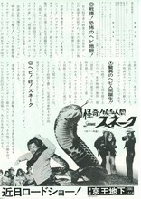 怪奇!吸血人間スネーク カイキキュウケツニンゲンスネーク 上映時間:99分 / 製作:1973年(米) 概要 配信情報 画像 監督の関連作品 出演者の関連作品 解説 科学者ストーナーは、人類が生き延びるにはヘビに進化する以外にないという考えに取り憑かれ、娘の恋人で助手のデビッドにキング・コブラの血清を注射する。徐々にヘビ男に変身していくデビッドは……。“ヘビ人間“の恐怖を描いた珍作。 情報提供:ぴあ スタッフ 監督:バーナード・L・コワルスキー キャスト ストローザー・マーテイン ダーク・ベネディクト ヘザー・メンジース 上映スケジュール 近くの映画館 上映スケジュールがありません さらに読み込む より詳しい検索はこちら