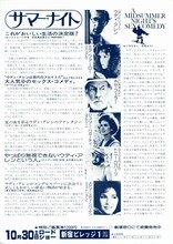 サマー・ナイト サマーナイト 上映時間:87分 / 製作:1982年(米) 概要 画像 監督の関連作品 出演者の関連作品 解説 アレン版「夏の夜は三たび微笑む」。20世紀初めのニューヨーク州北部の山荘を舞台に、3組のカップルが恋の喜劇を繰り広げる。例によってこじんまりとまとまった、見事なアレン作品。音楽は『真夏の夜の夢』ほか、メンデルスゾーンのクラシックを使用。 情報提供:ぴあ スタッフ 監督:ウディ・アレン キャスト ウディ・アレン メアリー・スティーンバージェン ホセ・フェラー ミア・ファロー トニー・ロバーツ 上映スケジュール 近くの映画館 上映スケジュールがありません さらに読み込む より詳しい検索はこちら