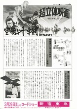 空飛ぶ十字剣 ソラトブジュウジケン 上映時間:97分 / 製作:1977年(香港) 概要 画像 出演者の関連作品 解説 17世紀、明朝時代の中国。王朝を牛耳る宦官ツァオは自分の地位に固執するあまり、天子の弟と、彼をかくまっていた修業僧たちを虐殺。難を逃れた青年タンは、家族を殺された恨みを胸に、ツァオへの復讐に挑む。劇場公開時、“ウルトラ・キュービック方式“と呼ばれる立体映像が話題となった、香港製の時代活劇。かたびらが変化した十字剣をはじめ、ユニークな武器が次々と登場。 情報提供:ぴあ スタッフ 監督:チャン・メイチュン キャスト パイ・イン レオン・タン 上映スケジュール 近くの映画館 上映スケジュールがありません さらに読み込む より詳しい検索はこちら