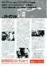 解説 東洋のパリと呼ばれながら裏を返せば数十万人のもの人が路上での生活を余儀なくされているカルカッタ。その中でも“歓喜の街(シティ・オブ・ジョイ)”と呼ばれるスラムに、人生に絶望したアメリカ人医師がやって来た。極限状況の中で、彼は人生の意義を再発見していく……。長期ロケを敢行した、R・ジョフィ入魂の感動ドラマ。