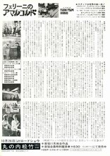 解説 フェリーニ自身の故郷である北部イタリアの港町の四季を、少年チッタの眼を通してノスタルジックに描いた作品。いたずら好きのチッタは仲間と一緒に憧れの女性グラディスカのあとを追い回しているが、彼女はチッタのことを子供扱い。一方チッタの父は、ファシズムに反対して拷問を受け、伯父は精神病院に入れられるなど一家には不幸続き。おまけに優しかった母までが死んでしまう。それでも明るさを失わないチッタは結婚の決まったグラディスカを祝福するのだった。町の住人が豪華客船を見物する有名なシーンに代表される人工的イメージと、温かい人間ドラマが絶妙に溶け合った傑作だ。