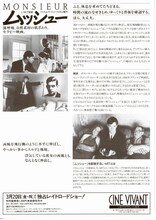 ムッシュー ムッシュー 上映時間:89分 / 製作:1989年(仏) 概要 画像 監督の関連作品 出演者の関連作品 解説 パリの高層ビルにオフィスを持つ、自動車販売会社のサラリーマン、ムッシュー。ガールフレンドは浮気中だけど、彼女の両親とはなんとなく仲良く同居。でもそのまま住むわけにもいかないのでちょっとお洒落なアパートへ。そこでもずうずうしい隣人に振り回されるが、やっかいごとからスルリと逃げて、気の合う彼女とデート。フランスの若者たちの“自然体“を、主人公ムッシューの姿にオーバーラップさせたキュートな作品。監督は「浴室」の原作者として知られるJ・P・トゥーサン。 情報提供:ぴあ スタッフ 監督:ジャン・フィリップ・トゥーサン 原作:ジャン・フィリップ・トゥーサン キャスト ドミニク・グールド ヴォイテック・プショニャック エヴァ・イオネスコ トム・ノヴァンブル 上映スケジュール 近くの映画館 上映スケジュールがありません さらに読み込む より詳しい検索はこちら