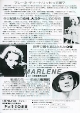 解説 映画がトーキーとなった直後の1930年代に「嘆きの天使」「モロッコ」などで大当たりを取り、大スターとなったマレーネ・ディートリヒ。ジョゼフ・フォン・スタンバーグ監督に可愛がられ、「間諜X27」「上海特急」「西斑牙狂想曲」などで神話的世界を築き、第二次大戦中は自由の戦いを支え、『リリー・マルレーン』をヒットさせて、さらに意欲的に生きたディートリヒの全貌をインタビューによって、解き明かそうとするドキュメンタリー。しかし86歳のディートリヒは強い意志でカメラの前に出ることを拒否する。過去の出演作品のフィルムやスチールが映し出されるそのバックに、やりとりが流される。インタビューをするのは彼女の指名を受けてこの映画の監督も兼ねるM・シェルだが、ディートリヒにやりこめられて、たびたび立ち往生するところがだらしない。