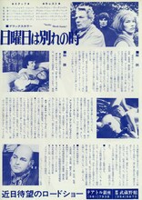 解説 J・シュレシンジャー監督が、二度の日曜日を含む10日間に二人の男と一人の女の間で起こった出来事を描き、現代人の孤独を照射した作品。ユダヤ人の中年開業医ダニエルは、若い芸術家ボブと同性愛の関係。一方、女経営コンサルタント、アレックスはボブに惹かれていた。ボブはダニエルとの生活に区切りをつけようとするが……。
