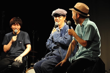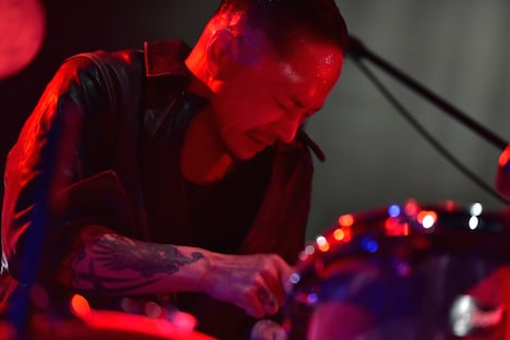 続いて劇中で伍長を演じたドラマーの中村、劇伴を担当した石川によるセッションへ。背後のスクリーンに過去の塚本作品の映像が映し出される中、「野火」や「