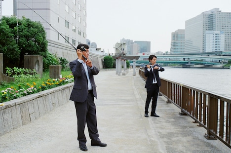 染谷は「今回の作品は漂流する男2人を撮りました。ある日中年のスーツの男と若者のスーツの男が隅田川付近を散歩します。しかしその2人はその場に存在する人なのかどうなのか? 時制の歪みからなる人の変わりよう、性格の変化を描きました。なんとも違和感あるファンタジー作品です」とコメントを寄せている。