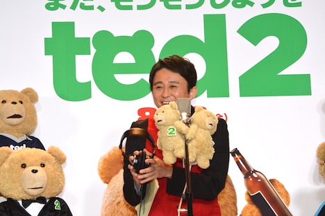 ここで有吉の日本語吹替キャスト続投を祝福し、テッドのオフィシャルファンクラブ代表に就任した小嶋がスタジオに登場。小さなテッドをいくつもあしらった花束ならぬ“クマ束”を小嶋から贈呈された有吉は「異常な重さですね」とぼやきながらも感謝を伝える。前作を観てからテッドが大好きになったという小嶋は、有吉を前にして「テッドといるような気持ちです」とうっとりして見せるも、有吉から「取ってつけたような発言だな!」と素早いツッコミが。