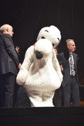 最後に登壇者と会場の全員による「I LOVE スヌーピー THE PEANUTS MOVIE!」というかけ声をきっかけに、スヌーピーの犬小屋がクリスマス仕様にライトアップ。感激したスヌーピーは子役たち1人ひとりにハグをして喜びを表し、大盛況のうちにジャパンスペシャルイベントは終了した。