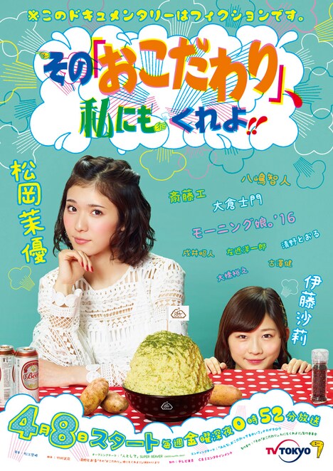 「その『おこだわり』、私にもくれよ!!」は、テレビ東京、テレビ大阪ほかにて毎週金曜の24時52分から放送中。明日4月15日放送の第2話には、「俳優・亀岡拓次」で知られる小説家の