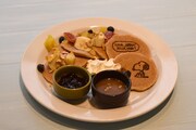 ライナスが大切にしている“安心毛布”にちなんだ名のカフェ・Cafe Blanketでは、サンドイッチとポテト、ピーナッツバターを盛り付けた“スヌーピーディッシュコンボ”やパンケーキ、ミルクセーキなどのオリジナルメニューを提供。室内とテラスあわせて約100席用意されているので、ゆっくりと食事を楽しむことができる。