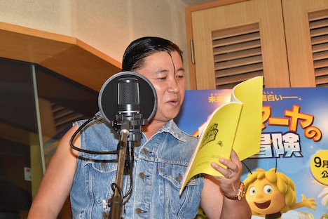 アフレコでは、マーヤ役の春名が「ウィリー! 本当にごめんなさい! 友達でいてくれる?」と真に迫った演技でセリフを読み上げる。それに対しマーヤの親友ウィリーを演じる野沢が、緩急のついたベテランならではの言い回しで返答すると、スタジオに集まった報道陣からは感嘆の息が漏れた。またダンディのセリフには「ゲッツ!」、スギちゃんのセリフには「ワイルドだろぉ?」というおなじみのフレーズも。