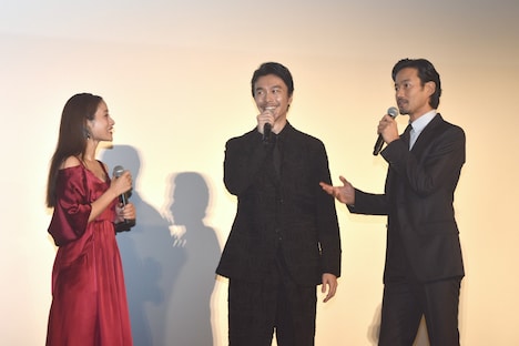 「シン・ゴジラ」は、東宝が12年ぶりに製作した「ゴジラ」最新作。長谷川は登壇するやいなや「初日を迎えられて最高にハッピーです!」と挨拶して観客を喜ばせる。樋口が「映画を観終わった人の前に立つのは初めて。まぶしくて表情が見えませんが、皆さんどうでしたか?」と尋ねると、会場中が大きな拍手で満たされた。