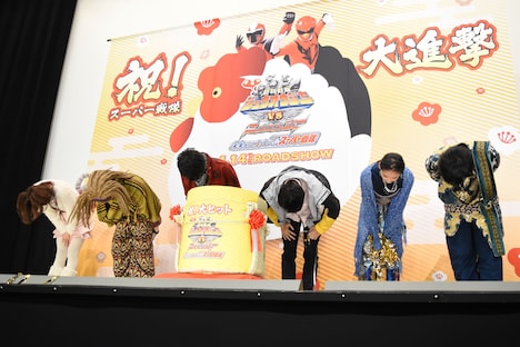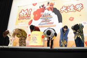 上映前のステージに登場した中尾は、「“大ヒット御礼”に見合う、価値のある、とても面白い、ものすごい映画になってます!」とわざとハードルを上げてみせる。渡邉は「見ての通り大ヒットということで……」と背後の垂れ幕を指すも、そこに「大進撃」と書いてあったことで観客は爆笑。「ド緊張してる」と言う國島が、先日のイベントを体調不良で欠席してしまったことをお詫びすると、ほかのキャストたちが「深爪、治った?(笑)」「挨拶長いよー!」と明るくいじった。