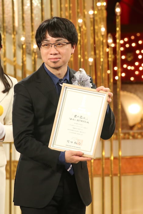 新海は「ここにいる(野田)洋次郎さんたちRADWIMPSと『君の名は。』を作っていたときは、話題になるとは思っていませんでした……」と挨拶し、「リスナーの方々に選んでいただけてようやく報われたような気がしました」と受賞を喜ぶ。RADWIMPSの野田洋次郎は「1年半をかけて、画作りと同時進行で音楽を作りました。(新海と)ああでもないこうでもないとたくさん話していた時間はとにかく楽しくて、会話を何百往復もしながら作った映画です」と述懐した。