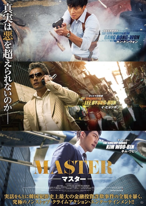 「MASTER/マスター」は、韓国史上最大規模の詐欺事件と言われるチョ・ヒパル詐欺事件をベースにしたクライムアクション。投資会社の会長チンをイ・ビョンホン、知能犯罪捜査班に所属する刑事キムを