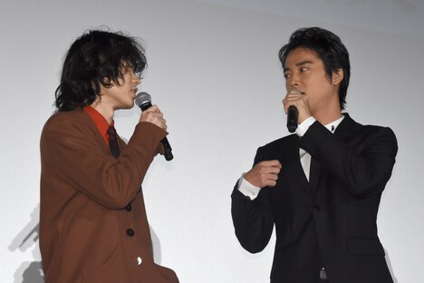 菅田のあとにマイクを握った桐谷が「やっぱり、ハッピーなメモリアル……」と真面目なトーンで話し始めると、川谷から「(菅田が)今言いました!」とすかさずツッコミが入り、菅田も「俺、そんなダサい言葉使いました!?」と声を張る。桐谷は「今度、歌詞に使おうかなと思って」とにこやかに宣言したあと、撮影の思い出を振り返りながら「このメンバーが集まることはなかなかないんやっていう寂しさを……」と感慨深げな面持ちで話すが、隣に立つ菅田の表情が気になる様子で「何笑ってんの?」とチクリ。いきなり話を振られた菅田は「そのコメントを訳すとハッピーなメモリアルだなと思って!」とこらえきれずに大笑いをした。