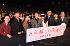 最後に土屋は「8は末広がりですし、横にすると無限大という意味があるので、とても縁起がいい数字。この場所で『8年越しの花嫁』という作品に無限大の愛情を注ぐことができて幸せに思います」と挨拶。また佐藤は「土屋さんはちょっととぼけたところもあるんですけど、現場では本当に難しい芝居を要求されて、それに全力で応えていた。ここまで相手の女優さんを応援しながら一緒にお芝居したのは初めてです。土屋さんの芝居を観るだけでも、お金を払ってこの映画を観る価値がある」と絶賛。そして「8年間の末に起こる最高の奇跡に、きっと幸せな気持ちになっていただけると思います」と映画をアピールし、イベントを締めくくった。
