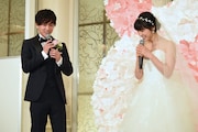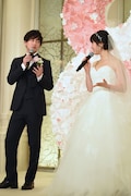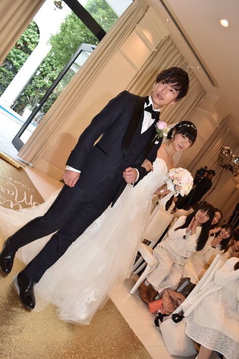 タキシード姿について土屋から「この距離で拝見すると、迫力がありますね」と言われた佐藤は、「いつもこの距離だったと思うけど!?」とツッコむ。土屋はさらに「撮影のときは尚志さんだったけど、今日は健先輩のタキシード姿なんだなと思って。髪型が違うから動揺してしまった。今日は世界中の女性を代表してしっかり立とうと思いました」と続ける。登場時の自身のエスコートを、佐藤は「40点くらいですね。もうちょっと心にゆとりを持ってやりたかったんですけど、緊張しちゃって」と辛口採点。また劇中で着用したものと同じウエディングドレスで登場した土屋は、自ら佐藤に「健先輩、私のドレス姿どうですか?」と迫る。「前代未聞だよ、そんな花嫁!」と笑われながらも、「もちろん、おきれいです」と言われると照れた表情を浮かべた。