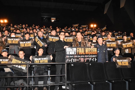 「ハイロー“男子”ナイト」と称された同イベントには、男性客のみが集結。まず久保とともに登場したAKIRAは、野太い歓声に迎えられ「ヤバいっすね、臭いも違いますね。男子校っていうか、お父さんの枕の臭いというか(笑)。最高っすね!」とコメントする。そして「これだけ男性の方々が世代を超えて熱狂してくれて、いろんなキャラクターのファンになってくれる。『HiGH&LOW』は新たな試みだったんですけど、3年間がんばってきてよかったと改めて思います。全国いろいろ回って来たんですけど、今日が一番心地いい舞台挨拶ですね!」としみじみ語った。