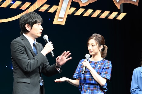 羽場二三一役の大吉は「スケールがすごすぎて、自分のこと(演技)がどうでもよくなりました!」と興奮した様子で話す。橘境子役の上戸が「大吉さんの声がコナンになじんでいたから気にならなかったんじゃない?」と問うと、大吉は「なじんでなかったとしても許されるな。そのくらい最後がすごいんですよ!」と作品の魅力を熱弁する。そんな大吉へ、上戸は「私、大吉さんの声だって気付かなくて。本当に声を入れました?って何度も確認しちゃいました」と述べて観客の笑いを誘った。