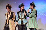 くっきーが手がけた主題歌の話題になると、ドルメンXのメンバーたちは「衝撃的でした」「耳から離れなくて、口ずさんじゃう自分がいる」「聴けば聴くほどクセになる」と思い思いに感想を述べる。くっきーは弾けんばかりの笑顔を見せ、突然小越の唇に小指でそっと触れたあと、その感触を自身の唇でも確かめる。その様子を見た客席のファンからは「キャー!」と黄色い歓声が上がった。