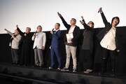 シャア・アズナブル役の池田は最初に「某テレビ局でガンダム歴代キャラクター部門総合1位に選ばれました」と自己紹介し、本作の舞台挨拶を迎えたことを「とてもいい気持ちです」と述べる。ギレン・ザビ役の銀河は「諸君、気を緩めてはいけない。戦いはこれからだ」とギレンの声色で話し、サスロ・ザビのイラストを抱えたドズル・ザビ役の三宅も「ザビ家に来ないか」とドズルの声色で呼びかけると、「ザビ家一同が今回集結いたしました。星になられた兄サスロもさぞ喜んでいるかと思います」とコメントし、会場を盛り上げる。安彦は「過ぎてしまうと夢のように早かったなという気持ちで、4年あまりで6時間強の映像を作りました。本当はもっとしんどいだろうと思ったのですが、皆さんに支えられて幸せな時間でした」と感謝を伝えた。