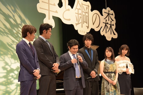 辻井は、劇中で和音が演奏するモーリス・ラヴェル作曲「水の戯れ」と「The Dream of the Lambs」を披露。優しく力強い辻井の演奏に、会場の人々は息をのんで聴き入った。演奏が終わると、上白石萌音は感激した様子で「役が決まってから撮影が終わるまで何百回と辻井さんの演奏を聴きました。私の思い描く和音の音は辻井さんのような音。焦がれていたというか、本当にどれだけこの音に支えられたかわからない」とあふれる思いを伝え、山崎も「僕自身、今日すごく来てよかったなというくらいの気持ち。元気をもらいました」と感動を表現する。